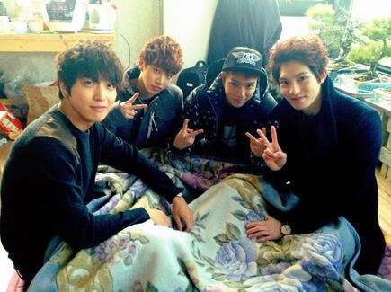 공개된 사진 속 정용화, 이종현, 이기광, 사이먼디는 실내에서 꽃무늬 이불을 덮고 앉아 손으로 브이를 그리는 등 다정한 포즈를 취하고 있다. 특히 이들은 조명을 받은 듯 빛나는 미모를 자랑하며 가요계 대표 남신의 자태를 뽐내고 있다.