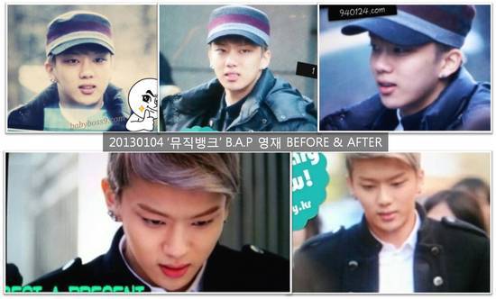 [OSEN=박지언 인턴기자] 그룹 B.A.P 영재의 KBS 2TV 가요프로그램 ‘뮤직뱅크’ 출근길 전과 후의 사진이 공개됐다.