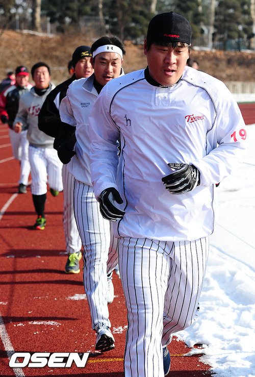 하례식 후 체력 테스트에서 정현욱이 러닝을 하고 있다.