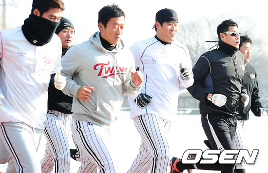 하례식 후 LG 선수들이 4Km 달리기 체력 테스트를 하고 있다