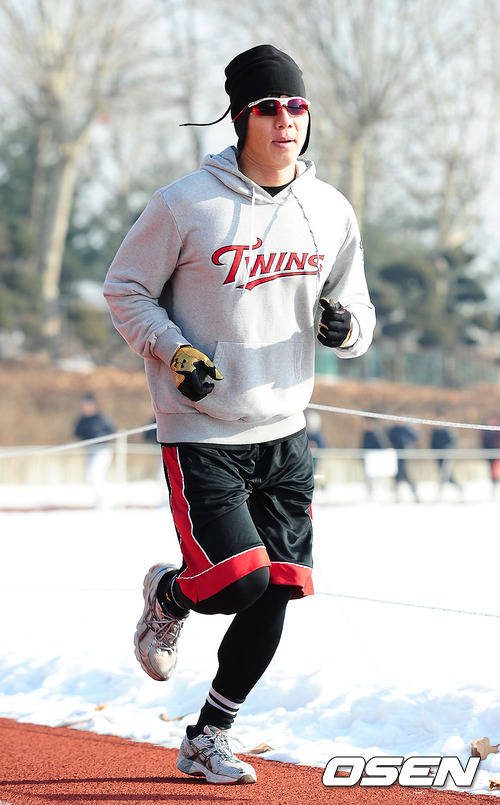 하례식 후 권용관이 4Km 달리기 체력 테스트를 하고 있다