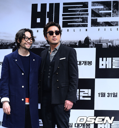 7일 오전 서울시 강남구 압구정 CGV에서 열린 영화 '베를린' 제작보고회에서 류승범과 하정우가 포토타임을 갖고 있다.