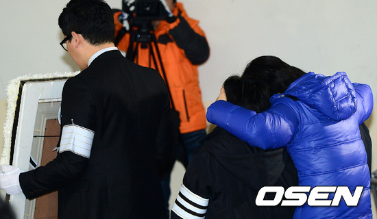8일 오전 서울 안암동 고려대병원 장례식장에서 진행된 故 조성민의 발인식이 진행된 가운데 최환희-준희 남매가 운구행렬을 따르고 있다.
