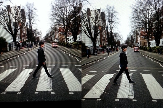 사진 속 정진운이 걷고 있는 곳은 영국의 전설적인 밴드 비틀즈의 마지막 앨범인 '애비 로드'의 재킷 앨범 촬영지로 유명한 장소다. 비틀즈의 멤버들이 횡단보도를 건너는 모습으로 유명했던 재킷앨범을 흉내낸 포즈를 취한 정진운의 모습이 눈길을 끈다.