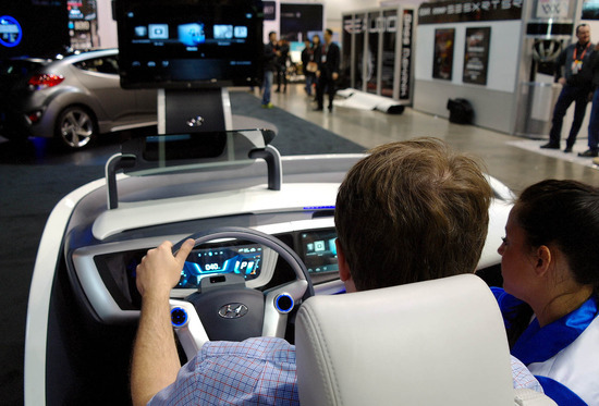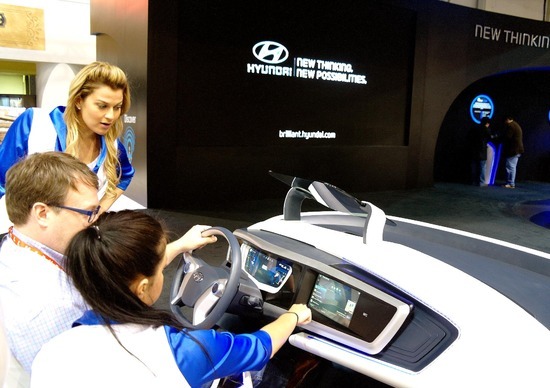 현대차는 이번 박람회에서 미래형 스마트 자동차 콘셉트 기술 중 하나인 '운전자 상태 감지 시스템'을 비롯해 상용화를 앞두고 있는 2세대 음성인식 및 스마트 내비게이션 시스템, 텔레매틱스 서비스인 '블루링크(Blue Link)' 등 3가지 테마에서 총 14종의 신기술을 전시했다.