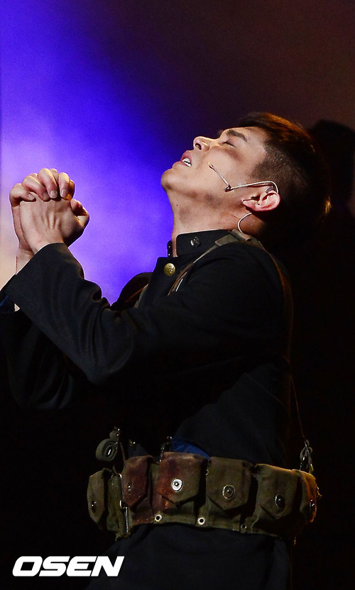 8일 오후 서울 중구 장충동 국립극장 해오름극장서 열린 군 창작뮤지컬 'The Promise(프라미스)'의 프레스콜 행사에서 정태우가 화려한 무대를 선보이고 있다.