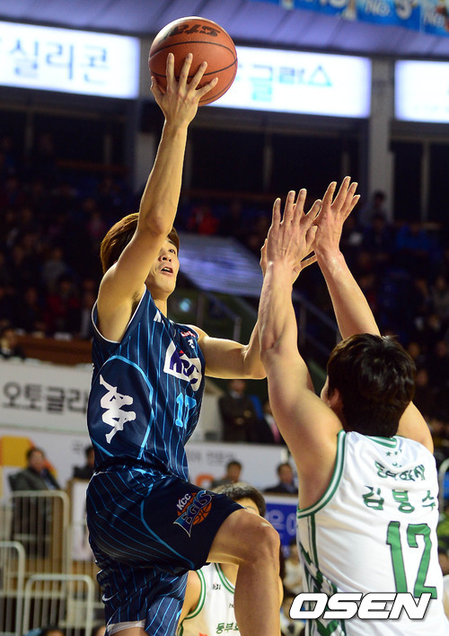 8일 오후 전주 실내체육관에서 열린 'KB 국민카드 2012-2013 프로농구' 전주 KCC와 원주 동부의 경기 2쿼터 신명호가 레이업을 시도하고 있다.