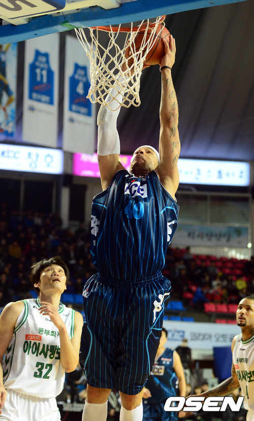 8일 오후 전주 실내체육관에서 열린 'KB 국민카드 2012-2013 프로농구' 전주 KCC와 원주 동부의 경기 2쿼터 브라운이 덩크를 성공시키고 있다.