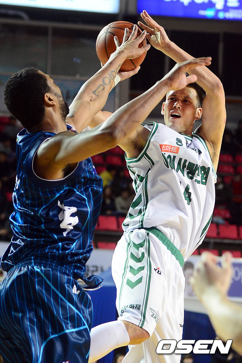 8일 오후 전주 실내체육관에서 열린 'KB 국민카드 2012-2013 프로농구' 전주 KCC와 원주 동부의 경기 4쿼터 이승준이 미들슛을 시도하고 있다.