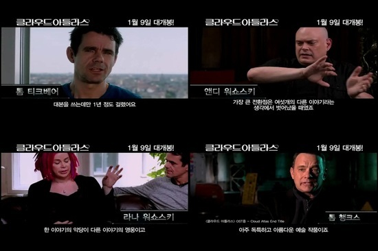 '클라우드 아틀라스' 비하인드 영상을 통해 톰 행크스, 할 베리, 짐 스터게스를 비롯한 '클라우드 아틀라스'의 배우들과 앤디&라나 워쇼스키 감독, 톰 티크베어 감독은 영화에 대해 소개하고 제작 과정을 이야기했다.