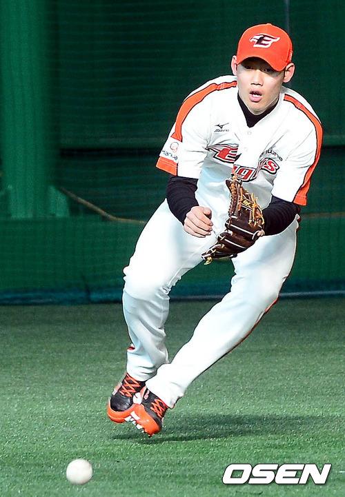 9일 오전 충남 서산시 한화 전용 훈련장에서 하주석이 수비훈련을 하고 있다.