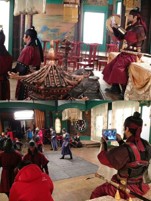 9일 소속사에 따르면 최근 탄현의 드라마 세트에서 촬영을 이어가던 지진희는 촬영 쉬는 시간을 이용해 극 속에서 첨예한 대립을 펼치고 있는 조민기와 동료 연기자들의 촬영 장면을 동영상으로 담아냈다. 갑옷을 입고 고려시대 장군의 면모를 한껏 드러낸 지진희가 최신 스마트 기기를 활용하고 있는 모습은 시청자들에게 색다른 재미로 다가가고 있다.