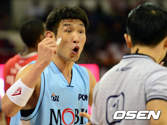 9일 오후 서울 잠실학생체육관에서 열린 'KB 국민카드 2012-2013 프로농구' 서울 SK와 울산 모비스의 경기 1쿼터 양동근이 심판에게 항의하고 있다.