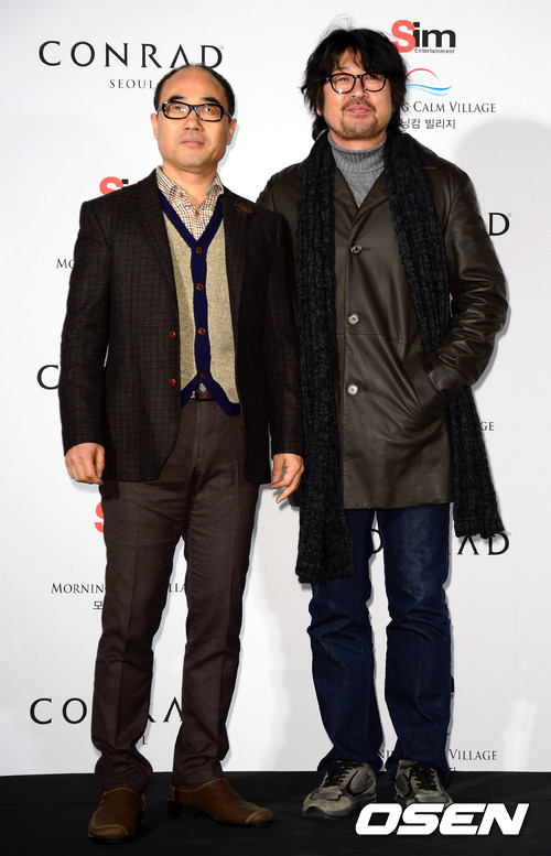 배우 강신일과 김윤석이 포토타임을 갖고 있다.