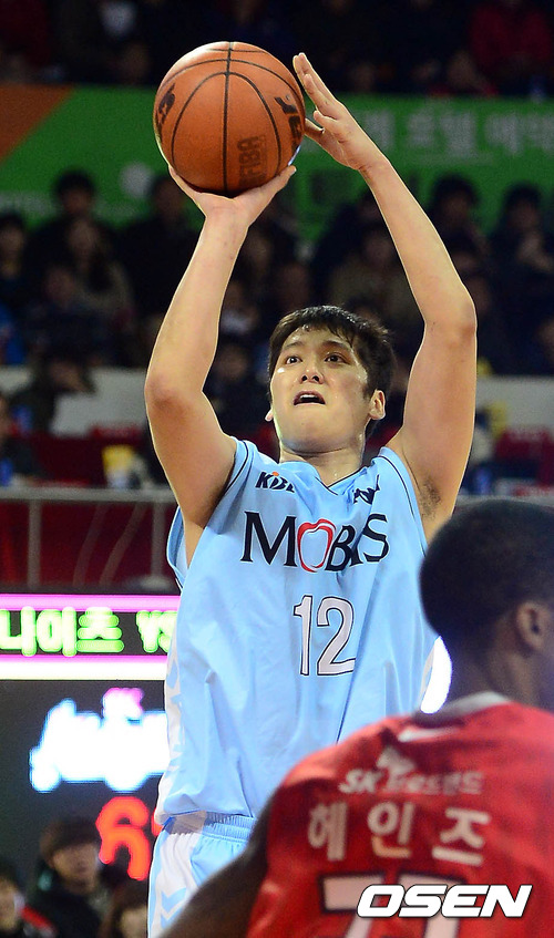 9일 오후 서울 잠실학생체육관에서 열린 'KB 국민카드 2012-2013 프로농구' 서울 SK와 울산 모비스의 경기 4쿼터 함지훈이 외곽슛을 시도하고 있다.