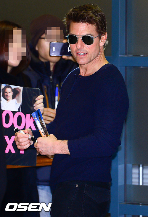 톰 크루즈가 팬들에게 사인을 하고 있다.