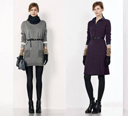 허리부터 무릎까지 스커트에 주름이 들어간 주름 니트 원피스는 귀엽고 러블리한 스타일을 연출할 수 있다. 반면 품이 넉넉한 원피스는 편안한 레깅스와 롱부츠를 함께 매치하면 패셔너블한 시크 스타일이 완성된다.