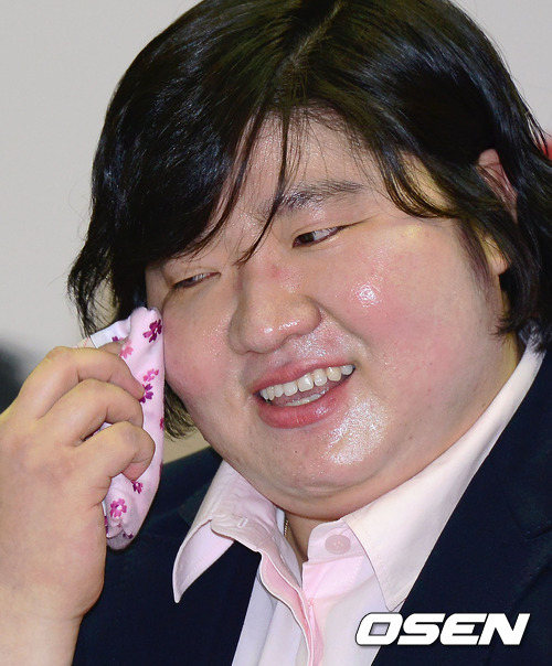 10일 오후 고양시청 내 체육관에서 진행된 한국 역도의 간판스타 장미란 은퇴 기자회견에서 장미란이 눈물을 닦고 있다.