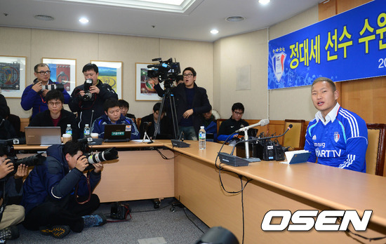 정대세가 10일 오후 서울 신문로 축구회관에서 열린 수원 입단 기자회견에서 취재진들과 질의응답 시간을 갖고 있다.