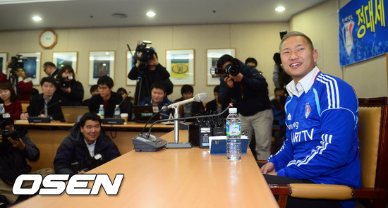 정대세가 10일 오후 서울 신문로 축구회관에서 열린 수원 입단 기자회견에서 미소를 짓고 있다.