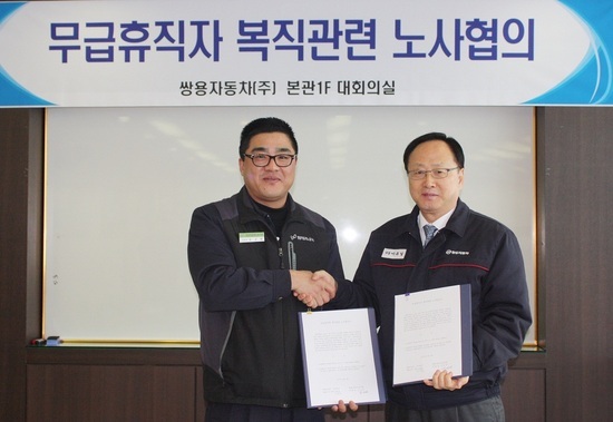 [OSEN=최은주 인턴기자] 쌍용자동차가 생산물량 증대 및 고통분담을 통한 일자리 나누기 차원에서 무급휴직자 전원에 대한 복직을 추진한다고 10일 밝혔다.