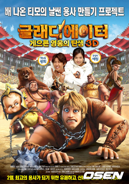 ‘글래이에이터’는 10일 캐릭터들의 통통 튀는 매력과 로마시대를 재현해낸 화려한 볼거리뿐만 아니라 더빙에 참여한 그룹 제국의 아이들 멤버 광희와 걸그룹 쥬얼리 멤버 예원의 센스 있는 포즈가 돋보이는 포스터를 선보였다.