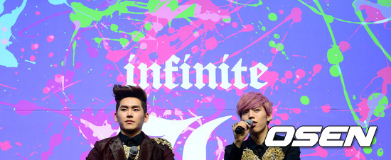 10일 오후 서울 광장동 유니클로 악스홀에서 열린 그룹 인피니트H 쇼케이스에서 인피니트 H 호야와 동우가 취재진의 질문에 답을 하고 있다.