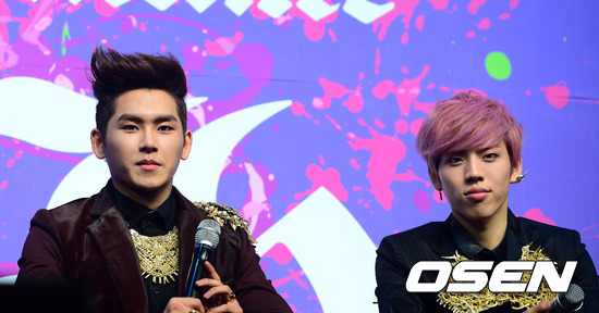 10일 오후 서울 광장동 유니클로 악스홀에서 열린 그룹 인피니트H 쇼케이스에서 인피니트 H 호야와 동우가 취재진의 질문에 귀를 기울이고 있다.