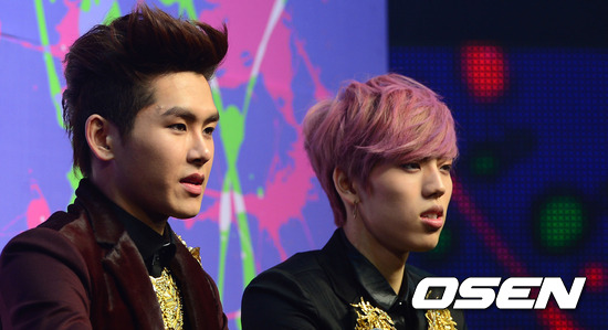 10일 오후 서울 광장동 유니클로 악스홀에서 열린 그룹 인피니트H 쇼케이스에서 인피니트 H 호야와 동우가 취재진의 질문에 귀를 기울이고 있다.