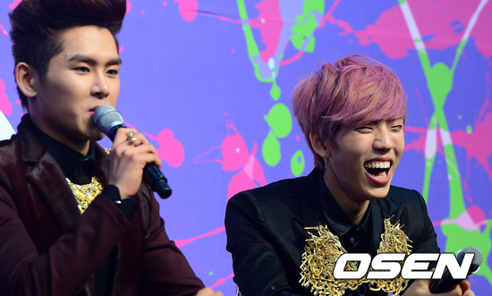 10일 오후 서울 광장동 유니클로 악스홀에서 열린 그룹 인피니트H 쇼케이스에서 인피니트 H 동우가 호야의 말에 환하게 웃고 있다.
