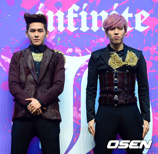 10일 오후 서울 광장동 유니클로 악스홀에서 열린 그룹 인피니트H 쇼케이스에서 인피니트 H 호야와 동우가 포토타임을 갖고 있다.
