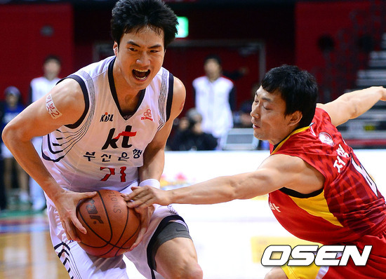 10일 오후 경기 고양체육관에서 열린 'KB 국민카드 2012-2013 프로농구' 고양 오리온스와 부산 KT의 경기, 1쿼터 KT 오용준이 오리온스 전형수의 수비를 뚫고 골밑 돌파를 시도하고 있다.