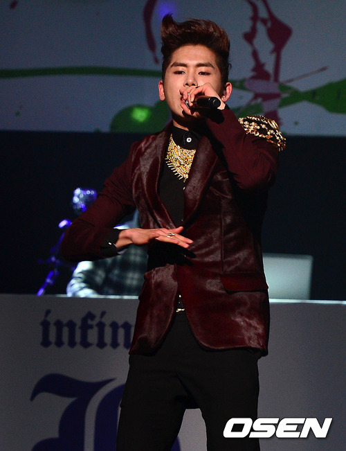 10일 오후 서울 광장동 유니클로 악스홀에서 열린 그룹 인피니트H 쇼케이스에서 그룹 인피니트H 호야가 화려한 공연을 펼치고 있다.
