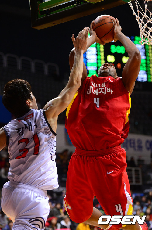 10일 오후 경기 고양체육관에서 열린 'KB 국민카드 2012-2013 프로농구' 고양 오리온스와 부산 KT의 경기, 4쿼터 오리온스 윌리엄스가 KT 장재석을 앞에두고 레이업슛을 시도하고 있다.