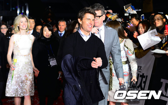 이날 오전 서울 여의도 콘래드 호텔에서의 내한 기념 기자회견을 마친 톰 크루즈와 로자먼드 파이크, 크리스토퍼 맥쿼리 감독은 부산으로 건너와 오후 레드카펫 행사에 참석했다.