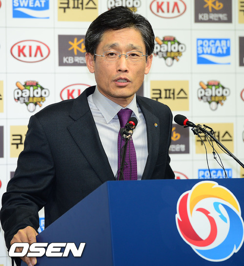 11일 오전 서울 도곡동 한국야구위원회(KBO)에서 열린 2013년 1차 이사회가 끝난 후 양해영 사무총장 결과 발표가 진행되고 있다.