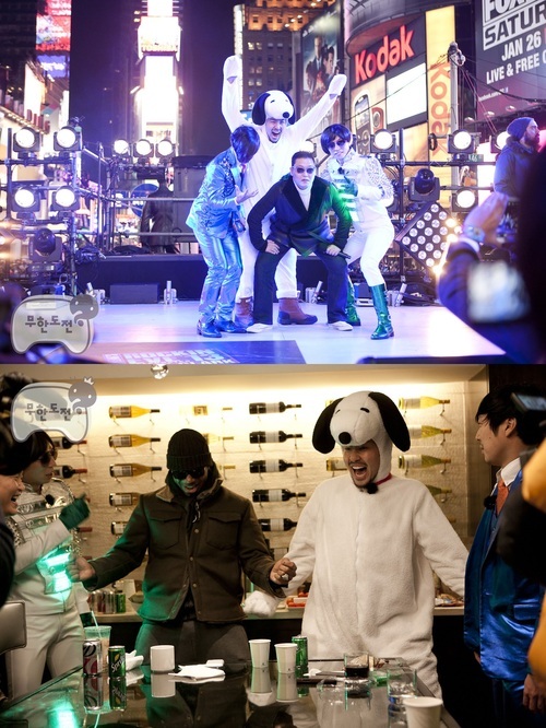‘무한도전’ 멤버들은 지난해 31일 뉴욕 타임스스퀘어에서 생방송으로 진행된 ‘DICK CLARK’S NEW YEAR’S ROCKIN’ EVE’에서 싸이의 ‘강남스타일’ 무대에 함께 올라 화제를 모은 바 있다.