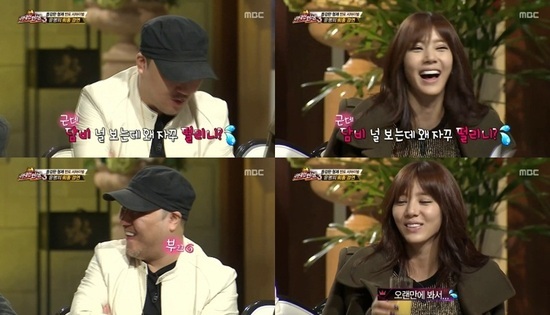 이후 손담비와 함께 자리에 앉은 용감한 형제는 손담비에게 "왜 널 보는데 떨리니"라고 수줍어 해 보는 이들을 폭소케 했다. 이에 손담비는 "오랜만에 봐서"라고 말을 흐리며 쑥스러워 했다.