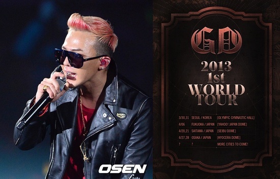 그룹 빅뱅의 리더 지드래곤이 오는 3월 30일, 31일 양일간 펼쳐지는 서울 공연을 시작으로 월드투어를 개최한다.