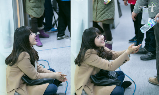 12일 공개된 사진에는 지난 10일 상암동에서 드라마 촬영 중이던 문근영의 모습이 담겼다. 문근영은 잠시 대기 중에 바닥에 앉았고, 자연스럽게 상대방과 얘기하던 중 그 사이를 지나가던 스태프가 문근영에게 물과 간식을 주면서 지나간 것.