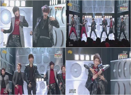 이날 회색 재킷에 자주색으로 포인트를 준 의상을 입고 등장한 보이프렌드는 중독성 있는 ‘아이야’ 멜로디에 맞춰 한치의 흐트러짐도 없는 칼군무 퍼포먼스를 선보였다.