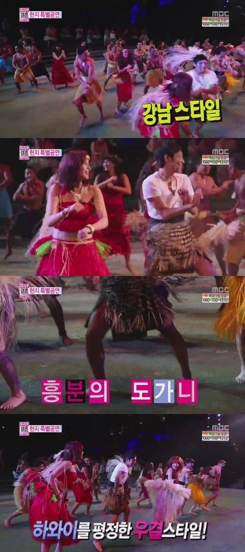 '우결' 부부들은 하와이에서 전통춤을 배워 무대에 올라 공연을 선보였다. 아내들은 훌라춤, 남편들은 마오이춤을 배워 원주민들과 함께 무대를 꾸몄다.