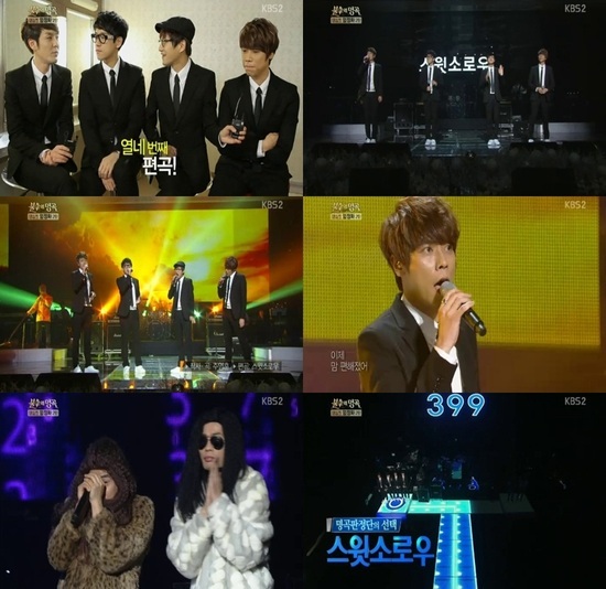 스윗소로우는 12일 오후 방송된 KBS 2TV '불후의 명국-전설을 노래하다(이하 '불후')'에서 엄정화 특집을 맞아 엄정화의 '다 가라'를 열창, UV를 꺾고 1승을 차지했다.