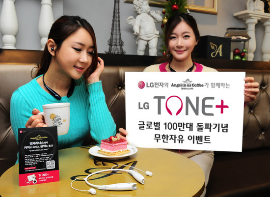 한편 LG전자는 ‘LG TONE시리즈’ 100만대 판매 돌파를 기념해 커피전문점 엔제리너스와 함께 이벤트를 진행 중이다. 전국 70여 개의 엔제리너스 직영점에 비치된 ‘LG TONE+’ 체험해 본 후 온라인 이벤트 게시판에 후기를 남기면, 추첨을 통해 ‘LG TONE+’ 50대, 옵티머스 G 이어폰 50개, 아메리카노 100잔 등의 경품을 받을 수 있다. 이번 이벤트는 2월 3일까지 진행된다.