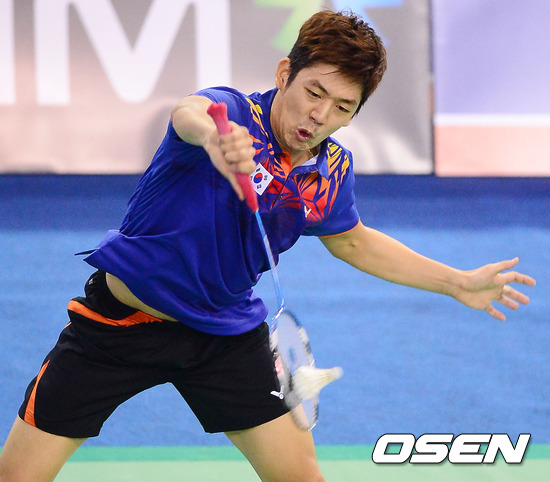 13일 오후 서울 방이동 올림픽공원 SK올림픽핸드볼경기장에서 열린 '2013 빅터 코리아오픈 배드민턴 슈퍼시리즈 프리미어' 결승전에서 이용대가 공격을 시도하고 있다.