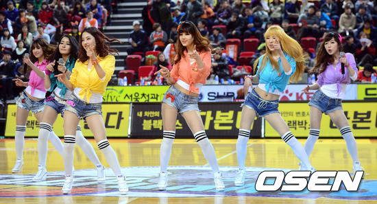 13일 오후 인천 삼산월드체육관에서 열린 'KB 국민카드 2012-2013 프로농구' 인천 전자랜드와 부산 KT의 경기, 비비드걸이멋진 공연을 선보이고 있다.