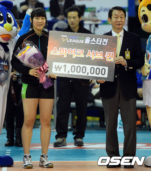 12일 오후 서울 잠실학생체육관에서 열린 NH농협 2012-2013 V리그 올스타전 스파이크 서브 퀸 이벤트에서 승리한 이소영이 기념촬영을 하고 있다.