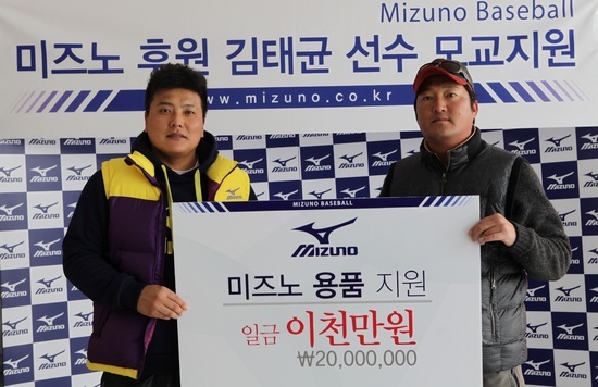 김태균은 "저를 키워 준 모교에 보은하고 좀더 나은 환경을 후배들에게 만들어 주고 싶은 마음을 항상 가지고 있었는데 이렇게 조금이나마 도움을 줄 수 있어서 기쁘다. 앞으로 저보다 더 훌륭한 선수들이 많이 배출되기를 바라며 이번 행사에 후원해 주신 미즈노 측에도 감사를 드린다"고 말했다.
