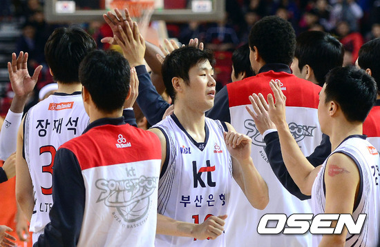 경기 종료 후 승리를 차지한 KT 조성민과 선수들이 하이파이브를 하고 있다. / youngrae@osen.co.kr