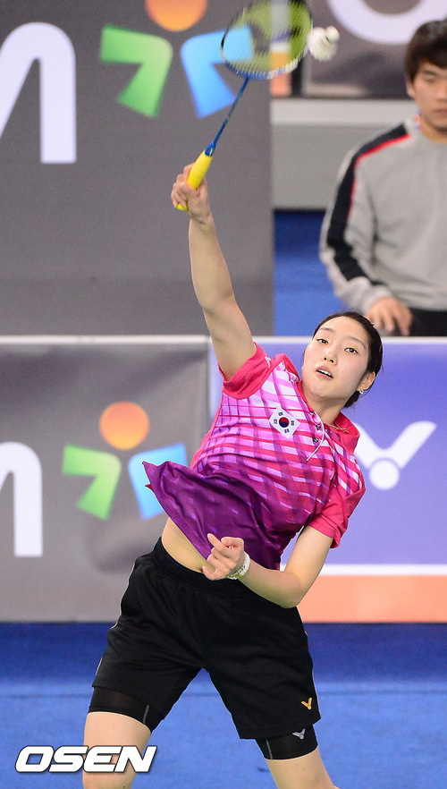 13일 오후 서울 방이동 올림픽공원 SK올림픽핸드볼경기장에서 열린 '2013 빅터 코리아오픈 배드민턴 슈퍼시리즈 프리미어' 결승전에서 성지현이 스매싱을 날리고 있다.